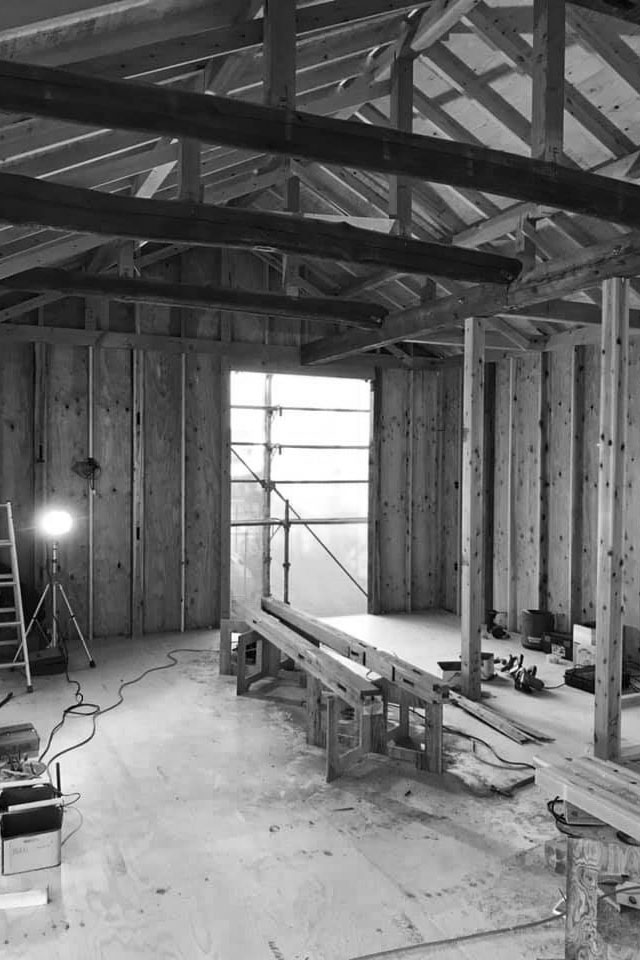 Oさんのご両親が所有する築100年ほど経つ小さな平屋は、もともと賃貸住宅として建てられたもの。空室になり取り壊しを考えたものの、柱や梁の傷みが少なかったことから「柱と梁を活かしたい」と、佐善工務店に相談に来られました。ご夫妻はそれまで仙台市に住んでいましたが、立地がOさんの職場のすぐ近くだったこともあり、フルリノベーションして転居することを決めました。