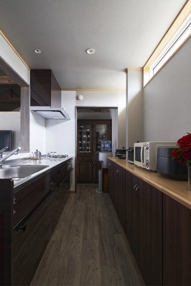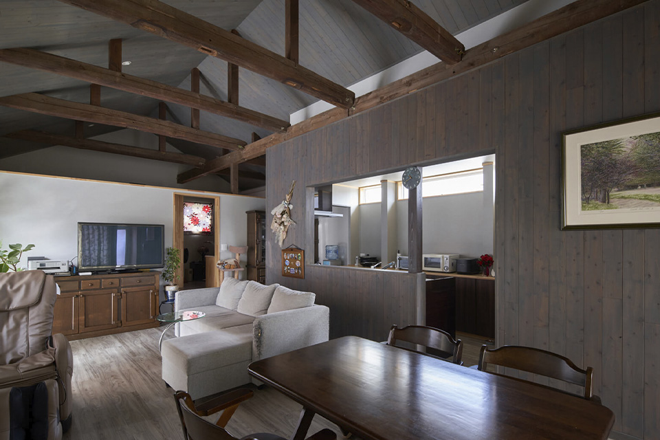 ご夫妻が希望したのは、「二人暮らしにちょうどいいワンルームの家」。そこで建築家・洞口苗子さんは三間続きの和室と縁側をすべてつなぐワンフロアの間取りを提案。自社職人を持つ当社の施工力を加え、古材の趣を活かしつつ高い住宅性能を備えた住まいへ生まれ変わらせました。